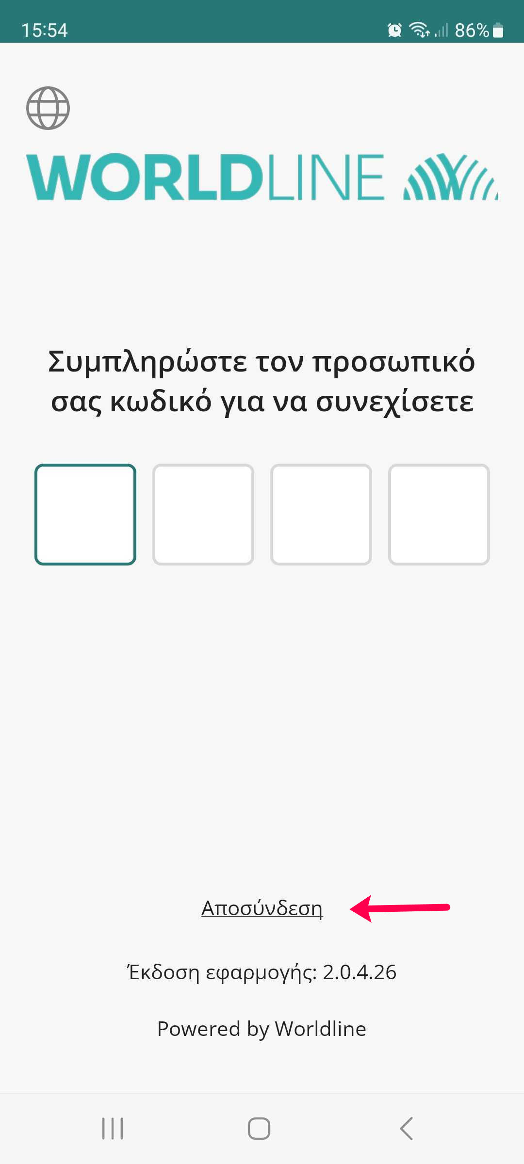 Σε αυτή την περίπτωση για λόγους ασφαλείας θα πρέπει να κάνετε ολική αποσύνδεση πατώντας το κείμενο αποσύνδεση που εμφανίζεται στο κάτω μέρος του πληκτρολογίου του προσωπικού σας κωδικού.