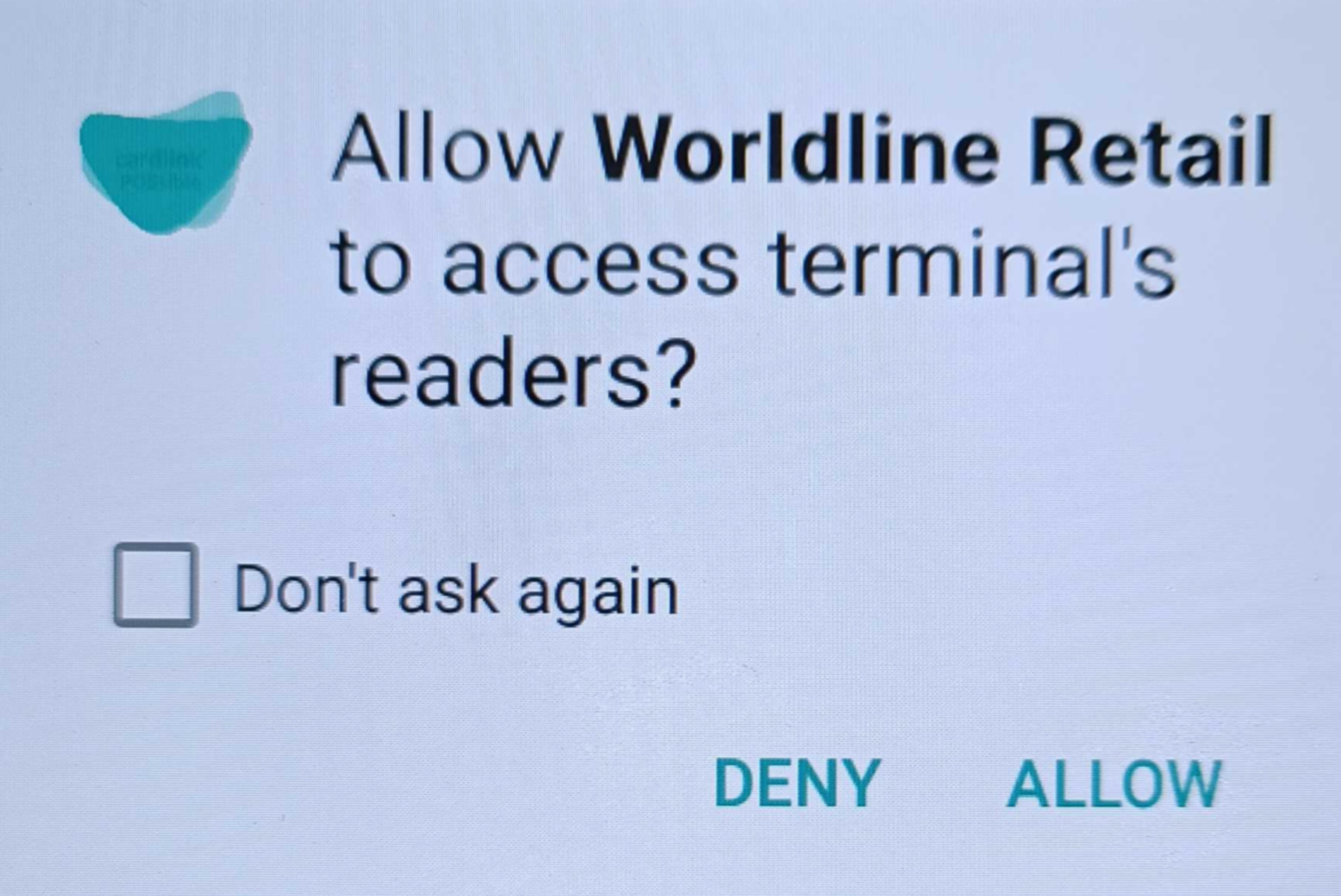 - Αν εξακολουθεί να μην εμφανίζεται το μήνυμα και μετά την επανεκκίνηση της εφαρμογής σιγουρευτείτε ότι έχετε ενεργοποιημένα τα permissions της εφαρμογής Worldline All-in-One ακολουθώντας τα βήματα του παρακάτω οδηγού: Πώς να ενεργοποιήσετε τα permissions στις ρυθμίσεις του τερματικού σας;