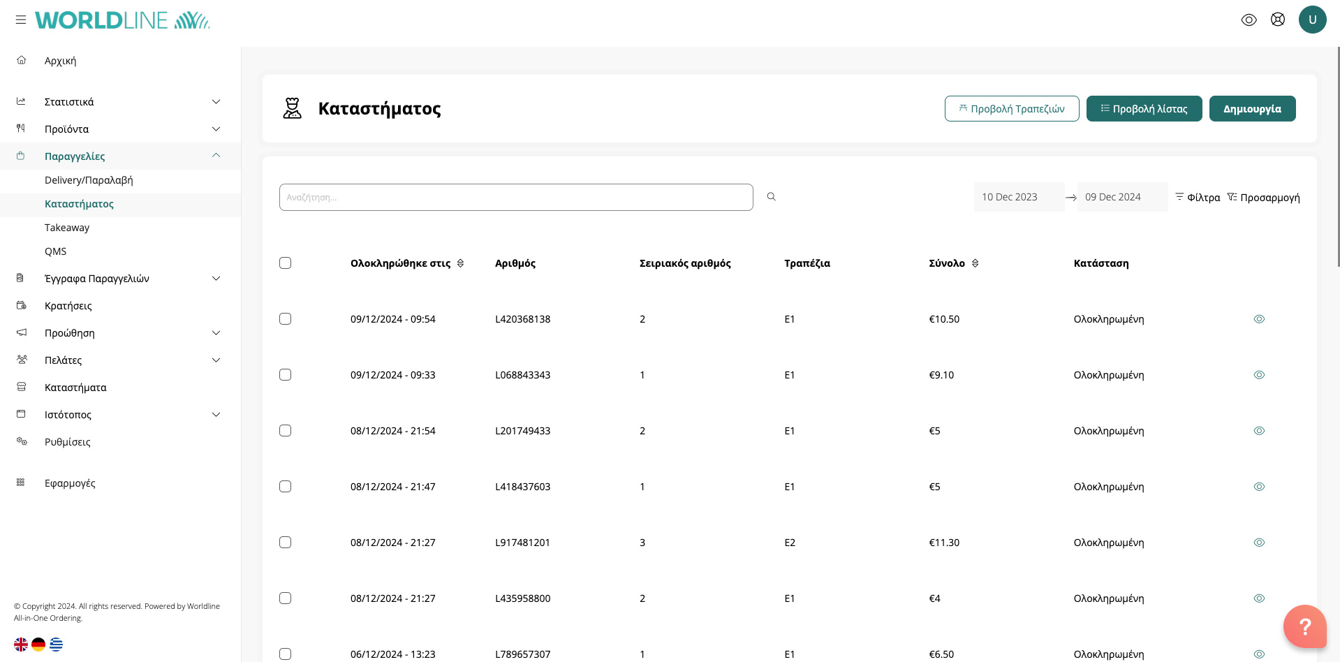 Παραγγελίες καταστήματος. Στην ενότητα αυτή, θα εμφανίζονται οι παραγγελίες του καταστήματος και οι αντίστοιχες λεπτομέρειες για κάθε παραγγελία.