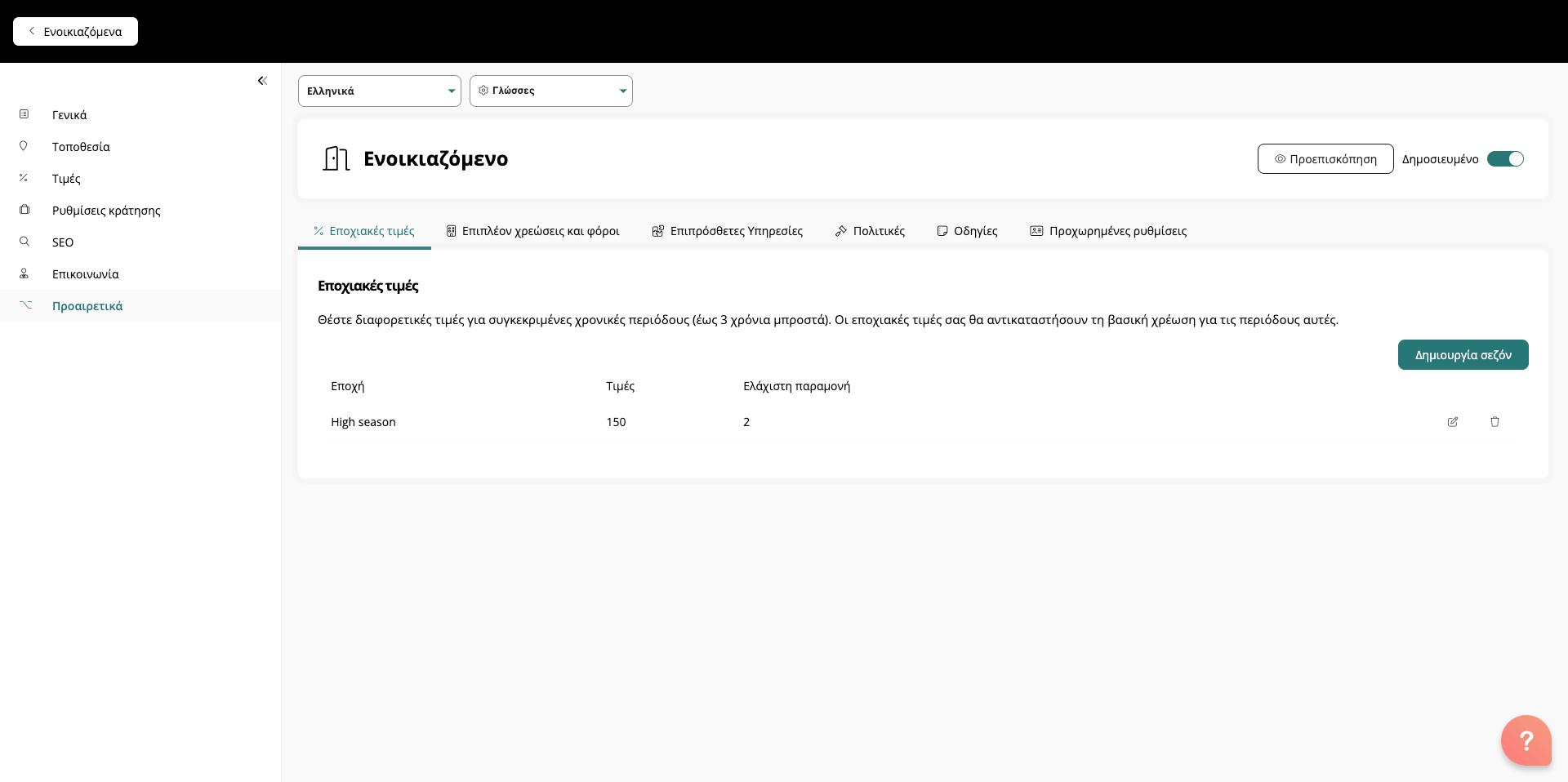Για να μάθετε περισσότερα σχετικά με τις ρυθμίσεις των εποχιακών τιμών, ανατρέξτε στην Καρτέλα Τιμές παραπάνω.