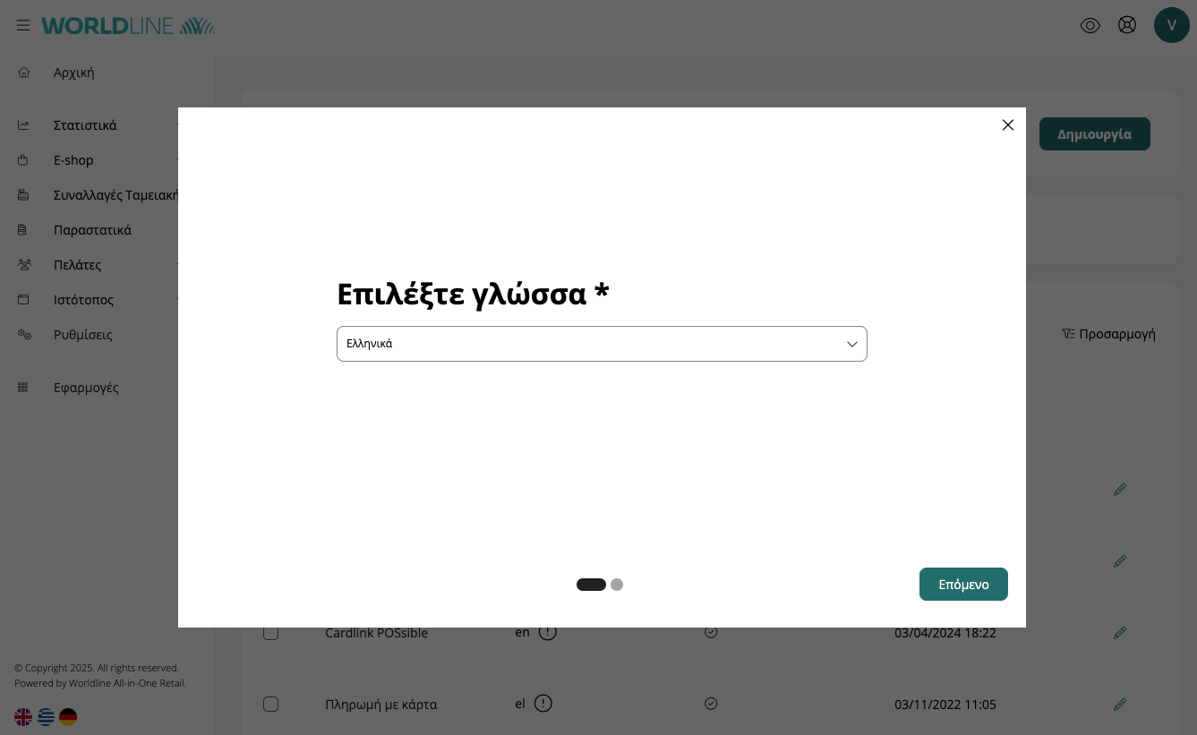 11. Στη συνέχεια θα συνδεθείτε με τους κωδικούς σας στην εφαρμογή Worldline All-in-Οne.