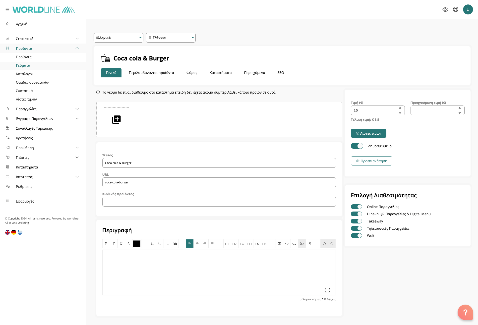 Το Worldline All-in-one Ordering σας δίνει όλα τα εργαλεία και τις δυνατότητες για τη δημιουργία γευμάτων για κάθε τύπο προϊόντος που θέλετε να πουλήσετε στους πελάτες σας.