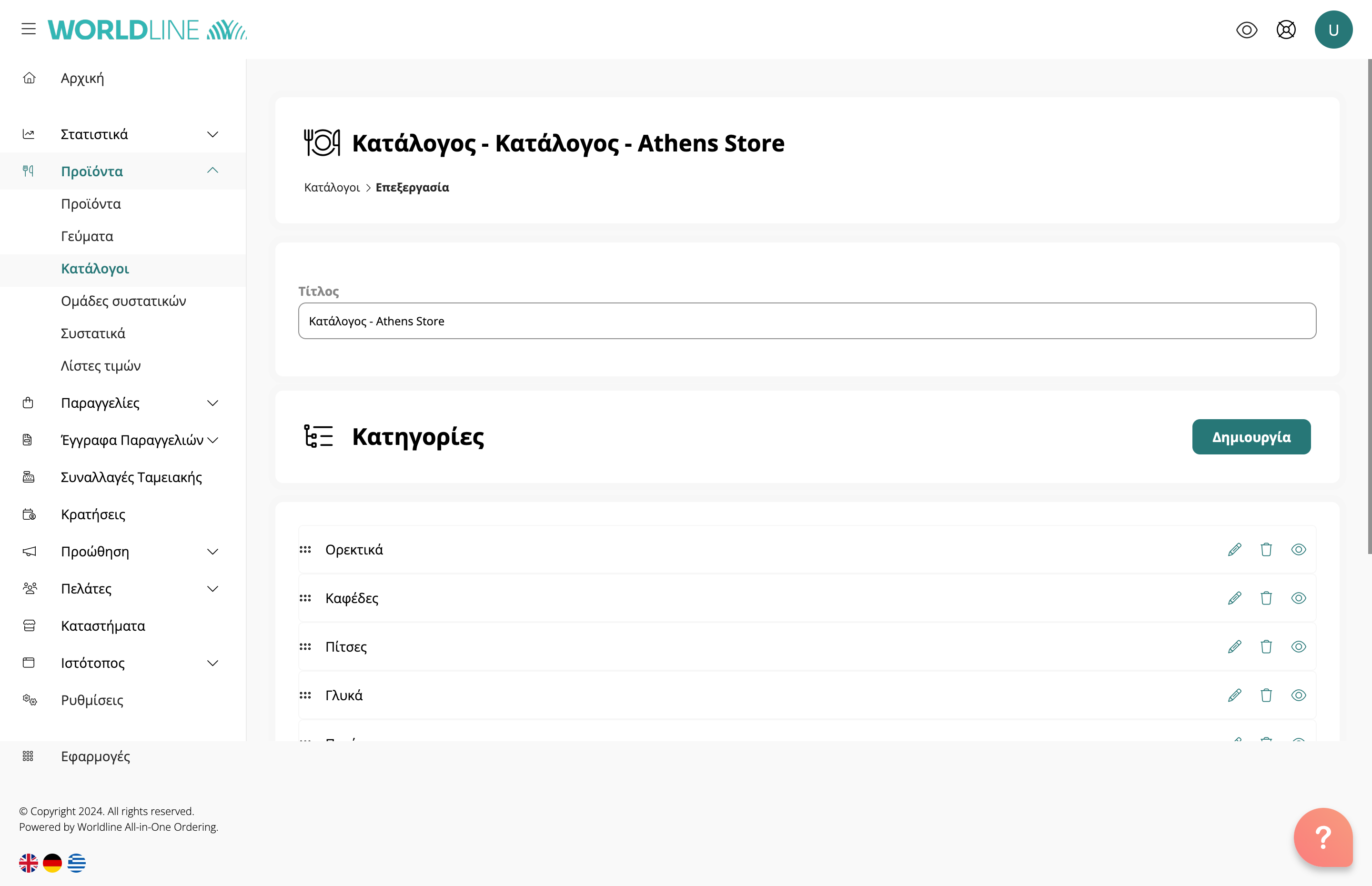 Πριν ξεκινήσετε τη δημιουργία κατηγοριών, πρέπει πρώτα να δημιουργήσετε ένα κατάλογο. Μεταβείτε στην ενότητα Προϊόντα > Κατάλογοι και κάντε κλικ Κάντε κλικ στο κουμπί "Δημιουργία" στην επάνω δεξιά γωνία της οθόνης σας για να ξεκινήσετε.