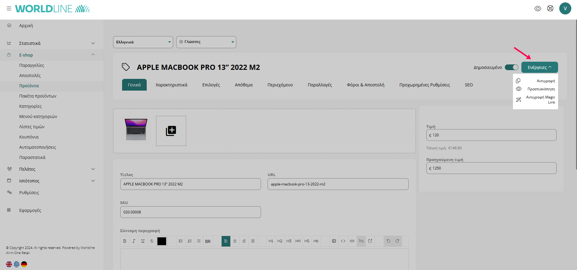 Αντιγραφή. Η επιλογή αυτή σας επιτρέπει να αντιγράψετε γρήγορα το προϊόν σας για την εύκολη δημιουργία παρόμοιων προϊόντων χωρίς να ξεκινήσετε από το μηδέν.