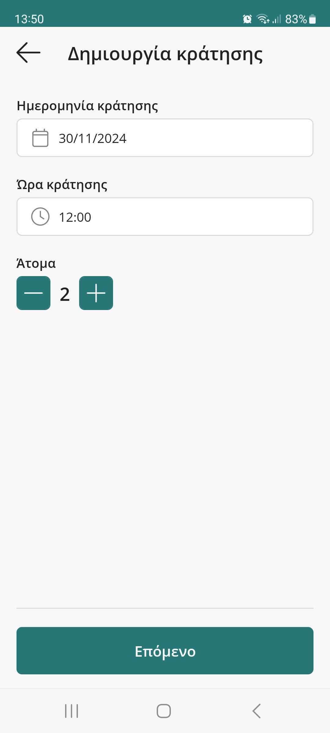 Άτομα. Καθορίστε τον αριθμό των ατόμων για την κράτηση.