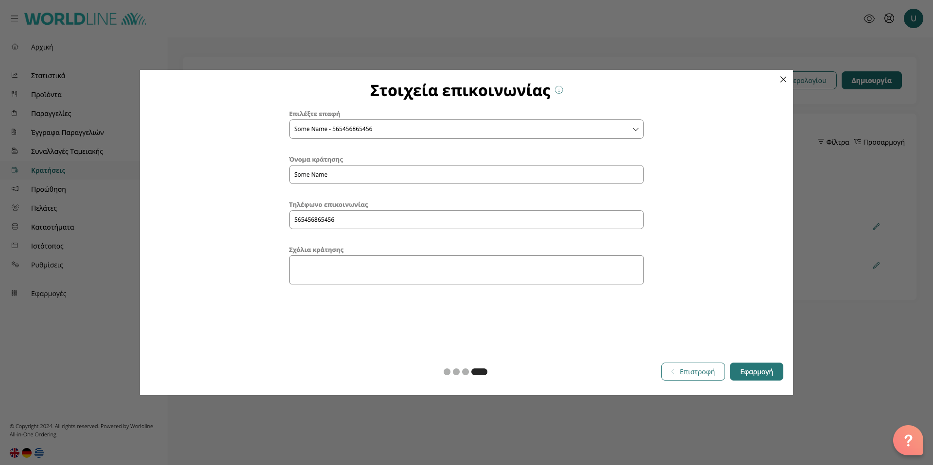 Αφού συμπληρώσετε τα στοιχεία επικοινωνίας, κάντε κλικ στο κουμπί "Εφαρμογή" για να επιβεβαιώσετε και να δημιουργήσετε την κράτηση.