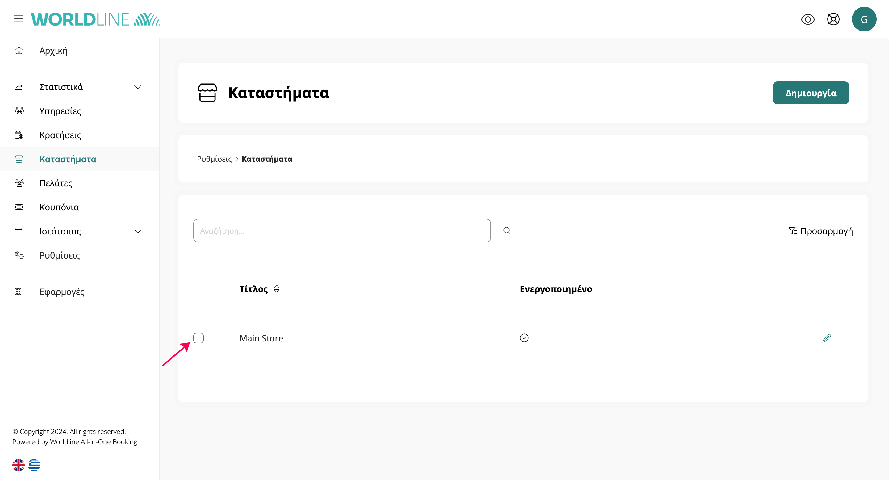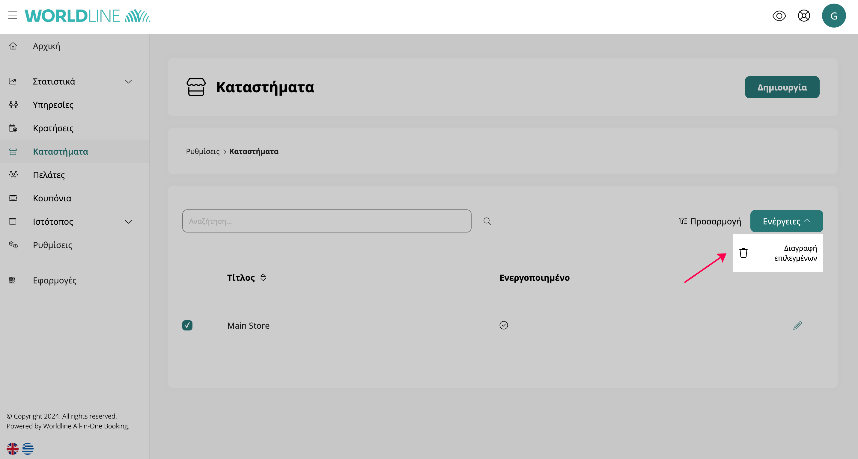 - Τσεκάρετε το κουτάκι στα αριστερά του καταστήματος που θέλετε να διαγράψετε.