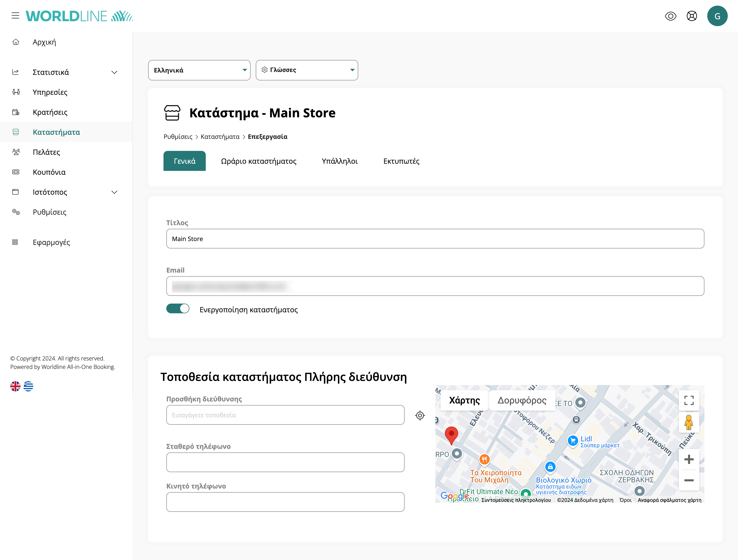 Αφού δημιουργήσετε τοποθεσίες καταστημάτων, μπορείτε εύκολα να διαχειριστείτε και να ενημερώσετε τις πληροφορίες τους από τον πίνακα διαχείρισης. Πλοηγηθείτε στην ενότητα "Καταστήματα" και επεξεργαστείτε, διαγράψτε ή προσθέστε πρόσθετες λεπτομέρειες για κάθε τοποθεσία.