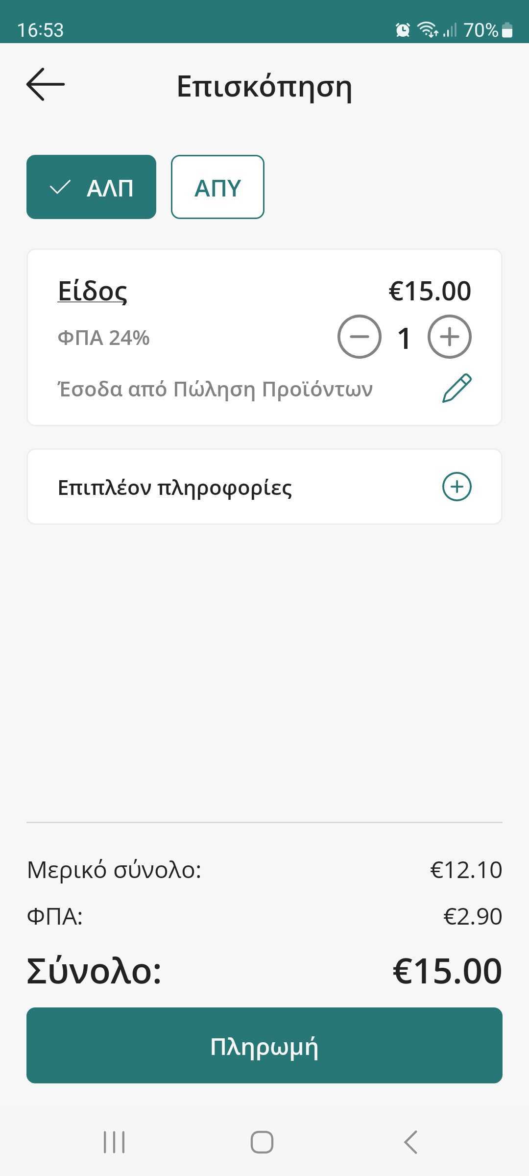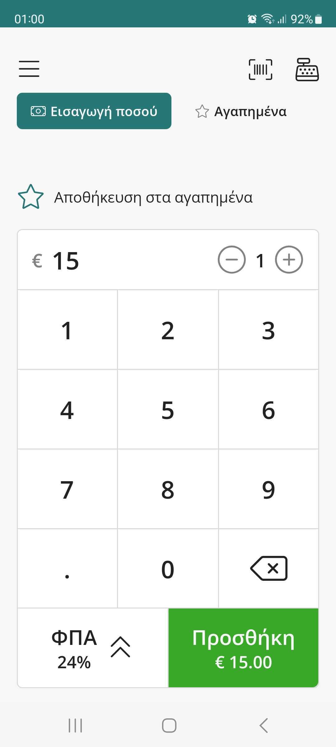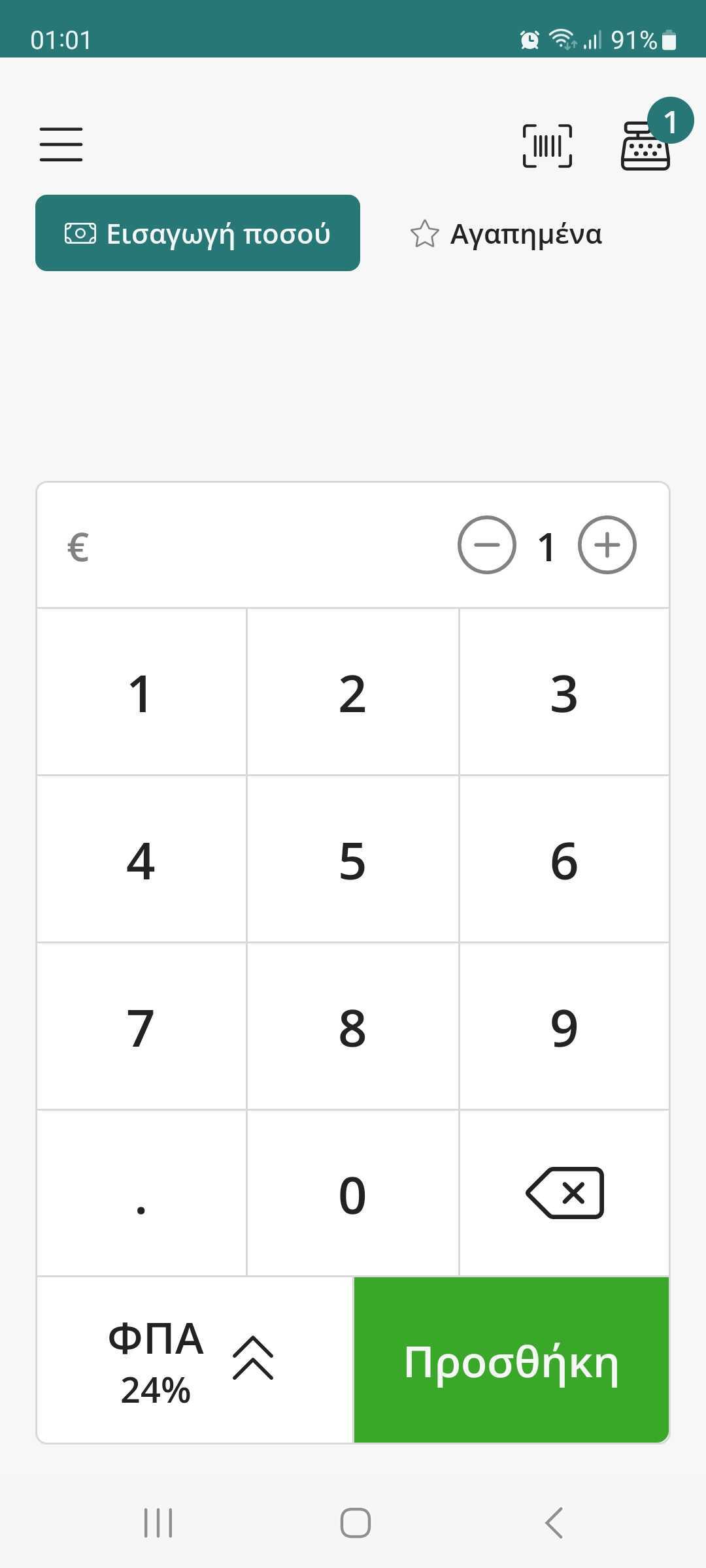1. Εισάγετε το ποσό της συναλλαγής και το αντίστοιχο ΦΠΑ.