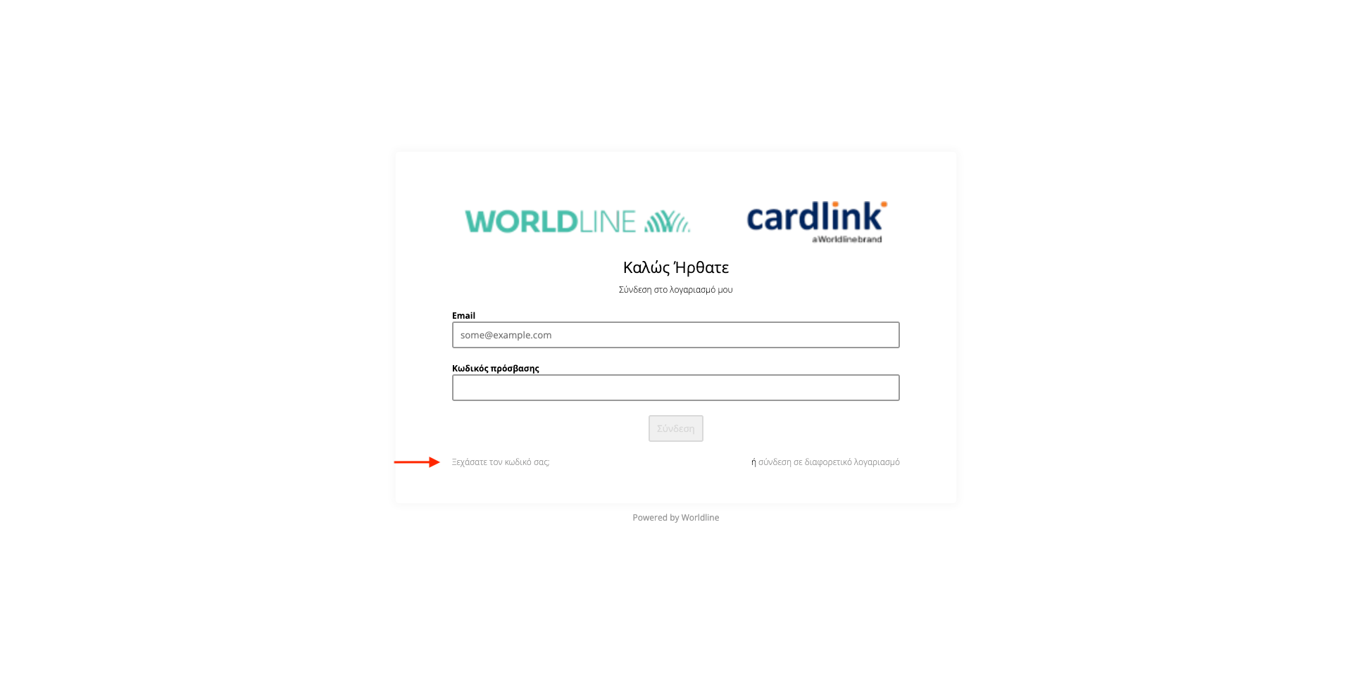 Σε περίπτωση που επιθυμείτε να επαναφέρετε τον κωδικό πρόσβασής σας στην πλατφόρμα Worldline All-in-One, παρακαλούμε ακολουθήστε τα παρακάτω βήματα: