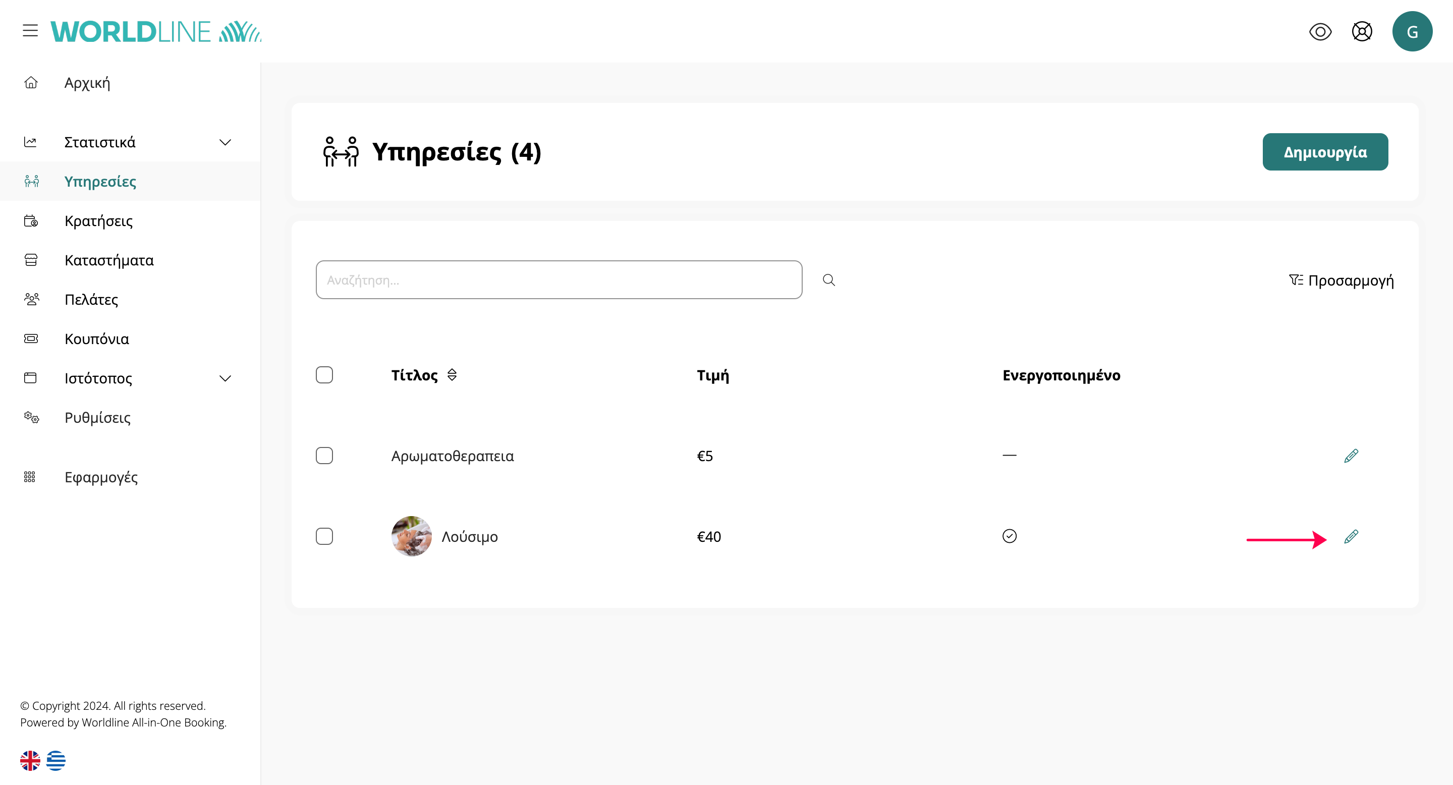 2. Κάντε κλικ στον τίτλο της υπηρεσίας για να προβάλετε λεπτομέρειες ή κάντε κλικ στο εικονίδιο με το μολύβι δίπλα στη σχετική υπηρεσία στα δεξιά.