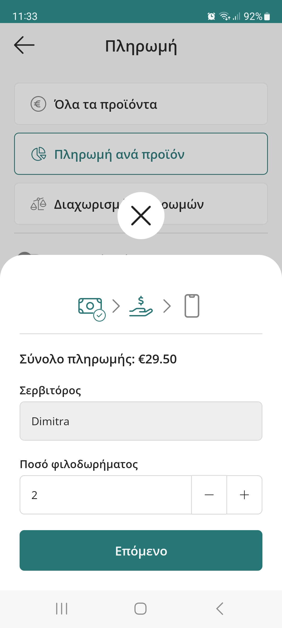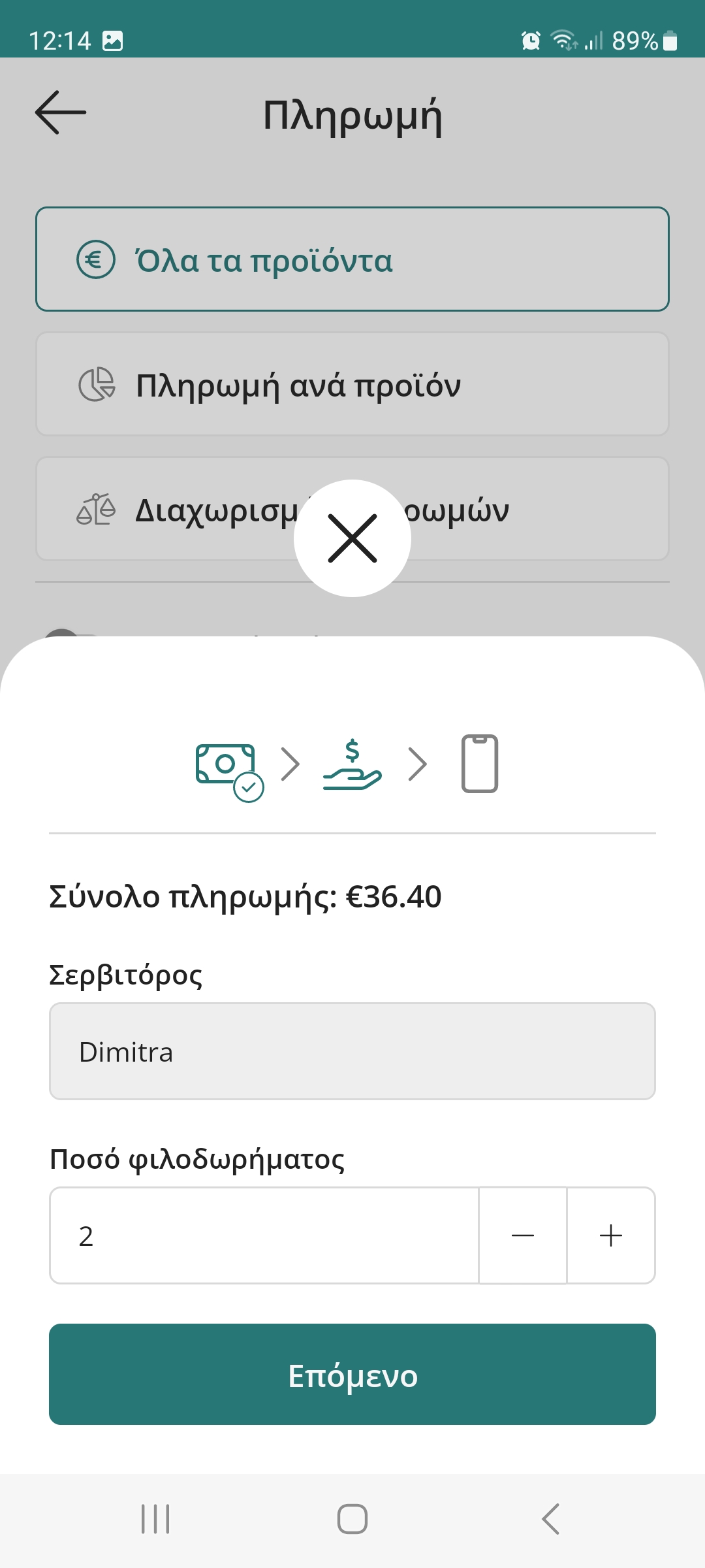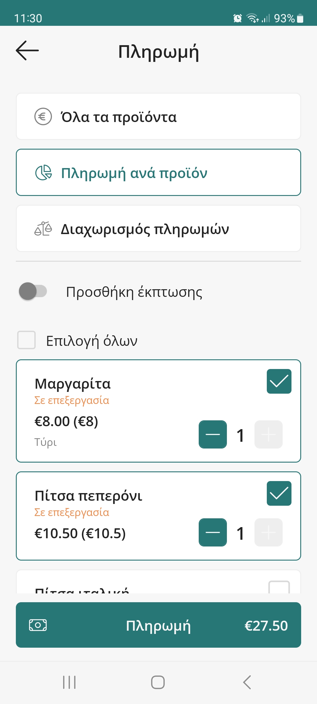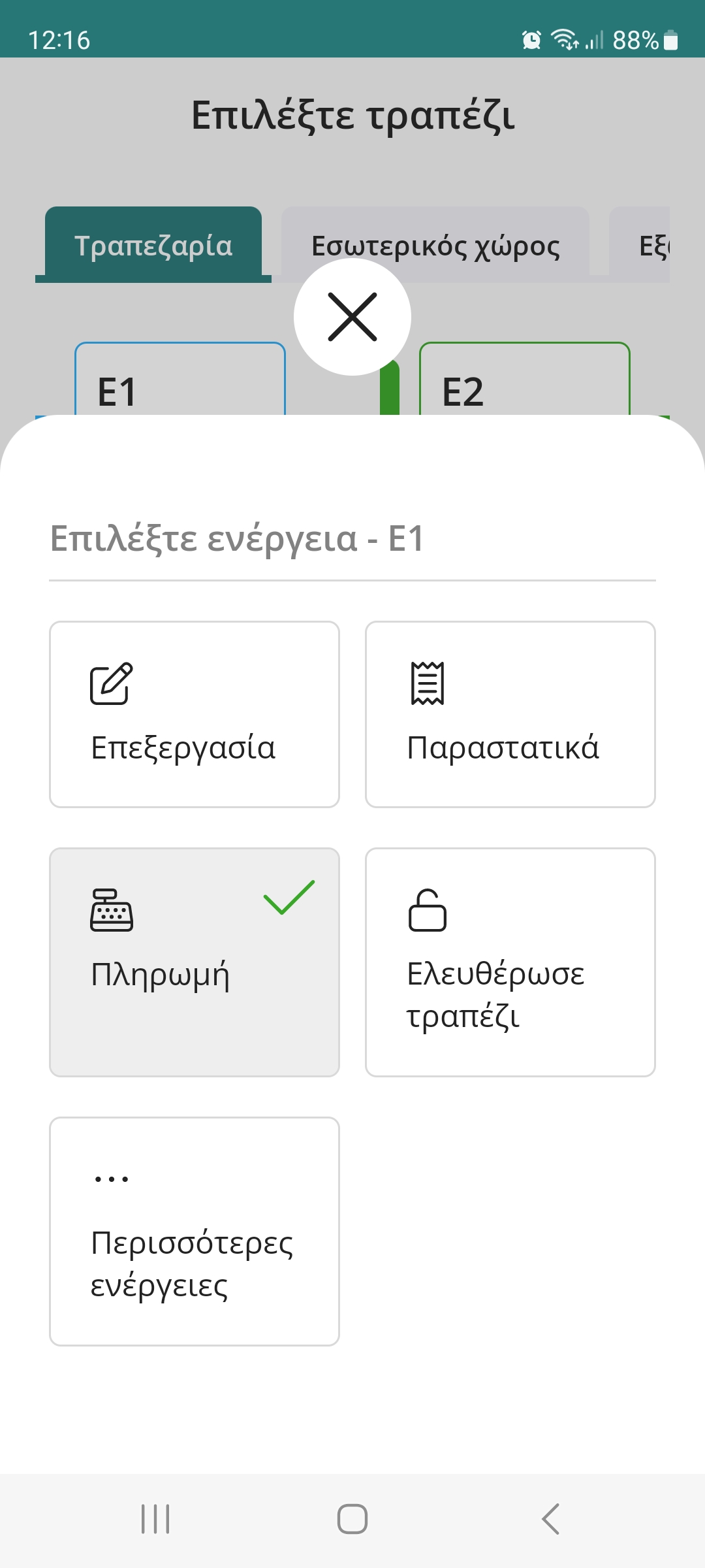 Λάβετε υπόψη ότι για να ολοκληρωθεί μία παραγγελία θα πρέπει να πληρωθούν όλα τα προϊόντα και να ελευθερωθεί το τραπέζι.