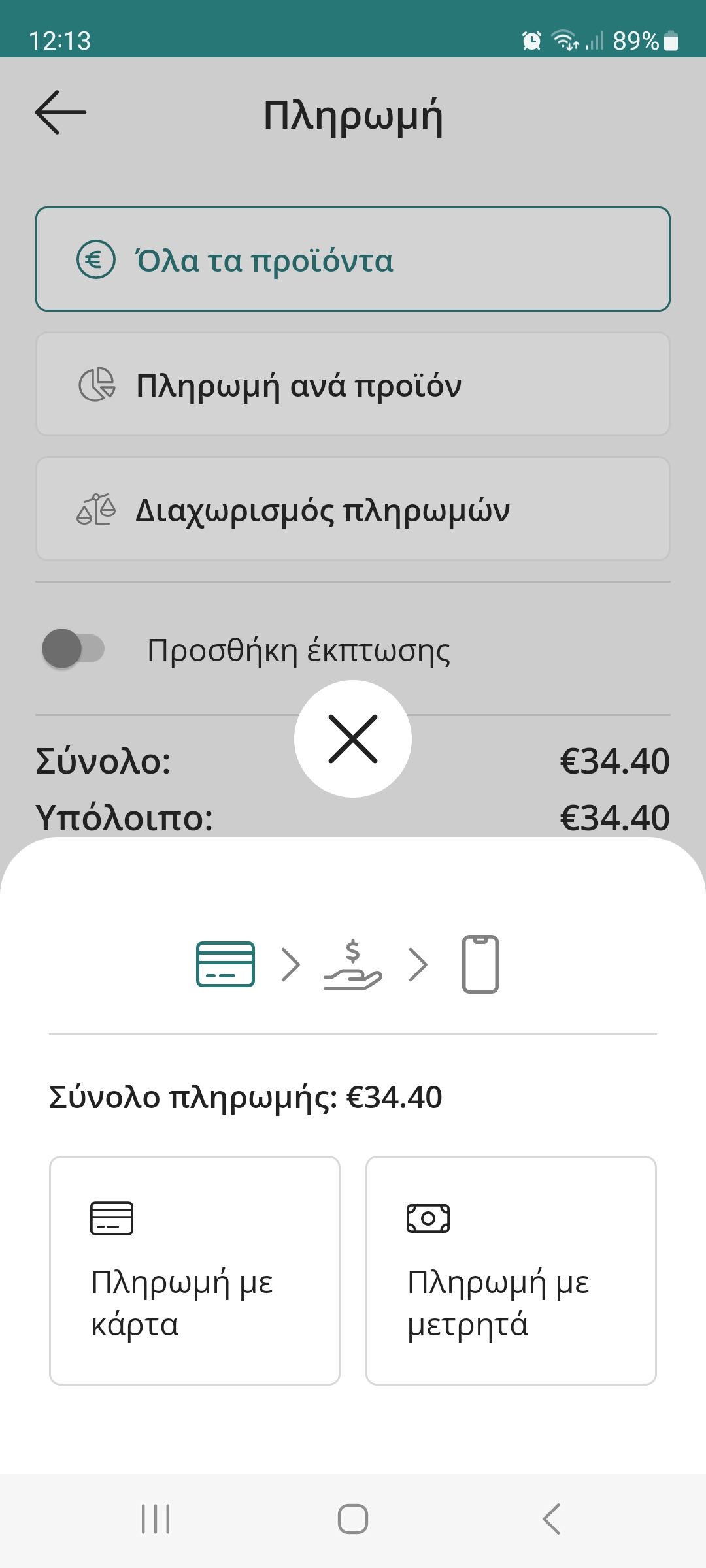 Μπορείτε να προχωρήσετε στην πληρωμή των υπόλοιπων προϊόντων ή να επιστρέψετε στα τραπέζια.