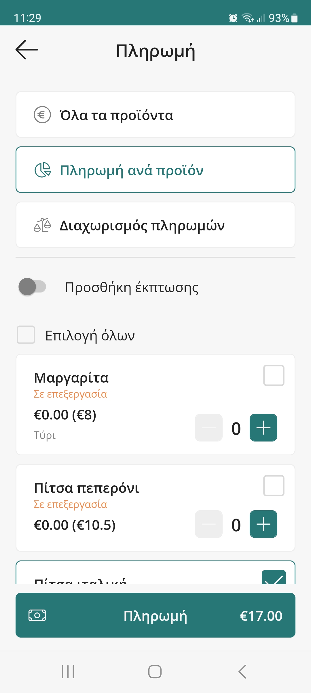 3. Επιλέξτε τα προϊόντα για τα οποία θέλετε να πληρώσετε, τσεκάροντας το κουτάκι στα δεξιά κάθε προϊόντος. Μπορείτε να επιλέξετε να πληρώσετε για συγκεκριμένα προϊόντα και τις ποσότητες τους.